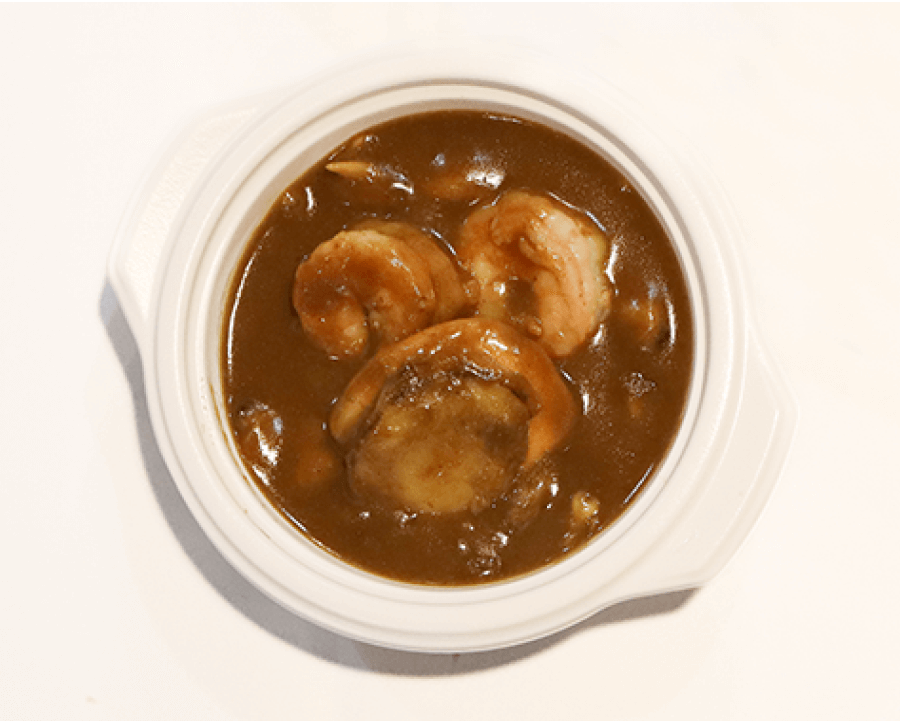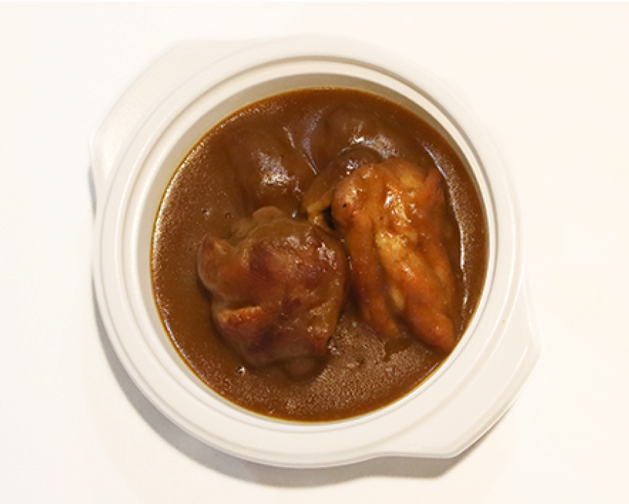 【原材料名】鶏肉(ブラジル産)、玉ねぎ、バター、カレールウフレーク(小麦粉、食用油脂、食塩、カレー粉、砂糖、その他)、三温糖、乳等を主要原料とする食品、牛肉、カレーソース、食塩、おろし生姜、香辛料、オリーブ調合油、チャツネ、フォン・ド・ボールウ、人参、セロリ/調味料(アミノ酸等)、カラメル色素、乳化剤、香料、酸味料